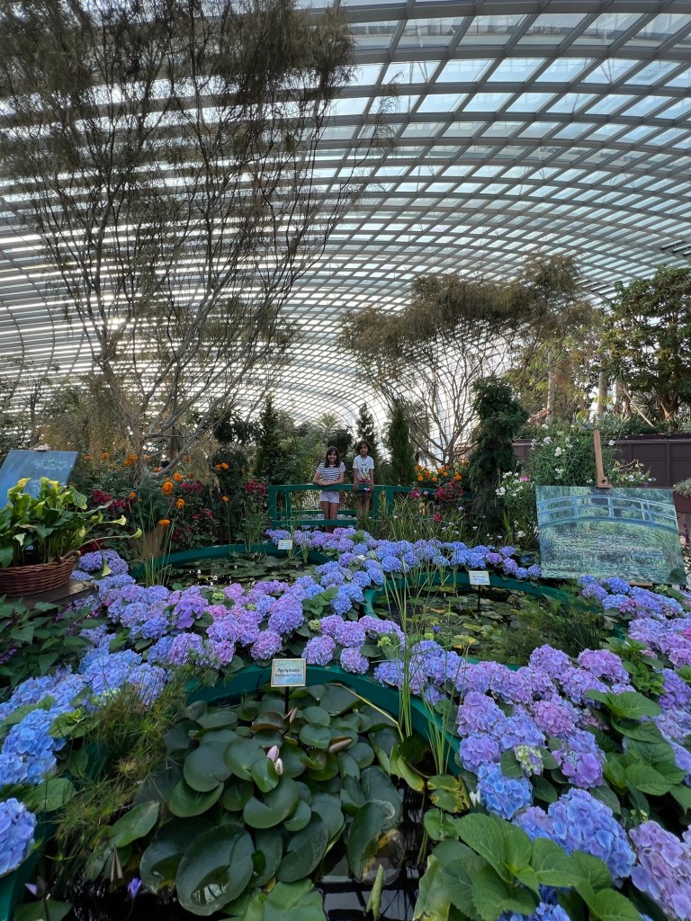 Secondly, we went to the Flower Dome. It was based on an around-the-world-version of Claude Monet’s iconic gardens and was super cool! There were separate sections with trees from all over the world, models of Monet’s house, an informative museum of artwork and artists and LOADS of plants and flowers! It was wonderful!