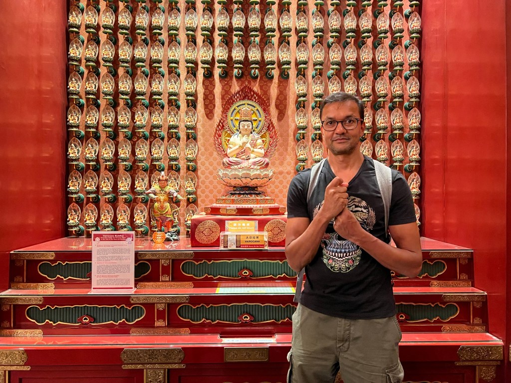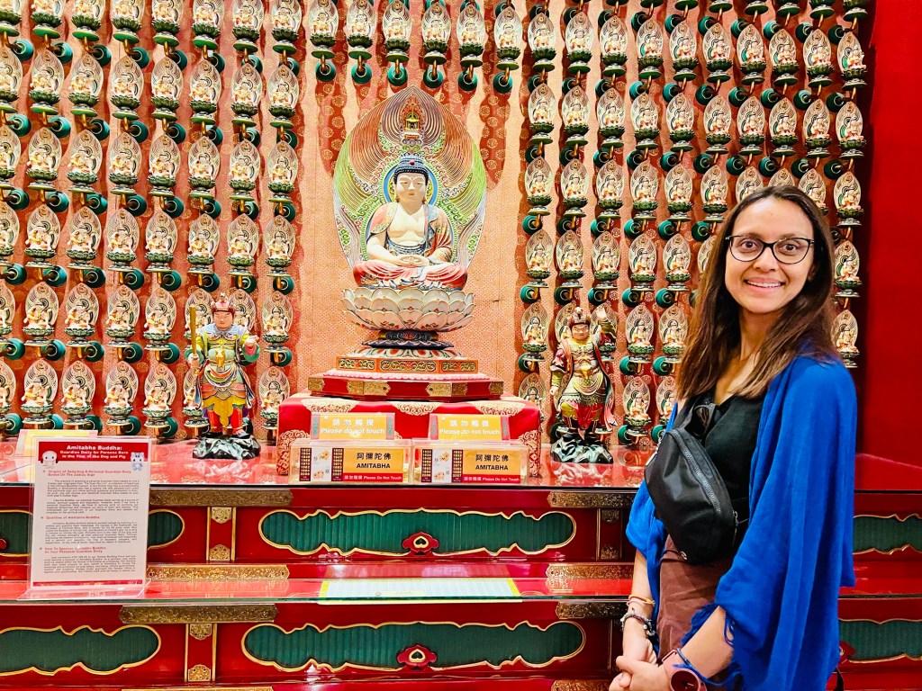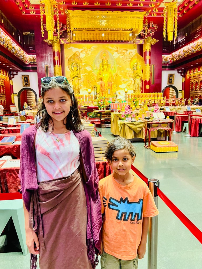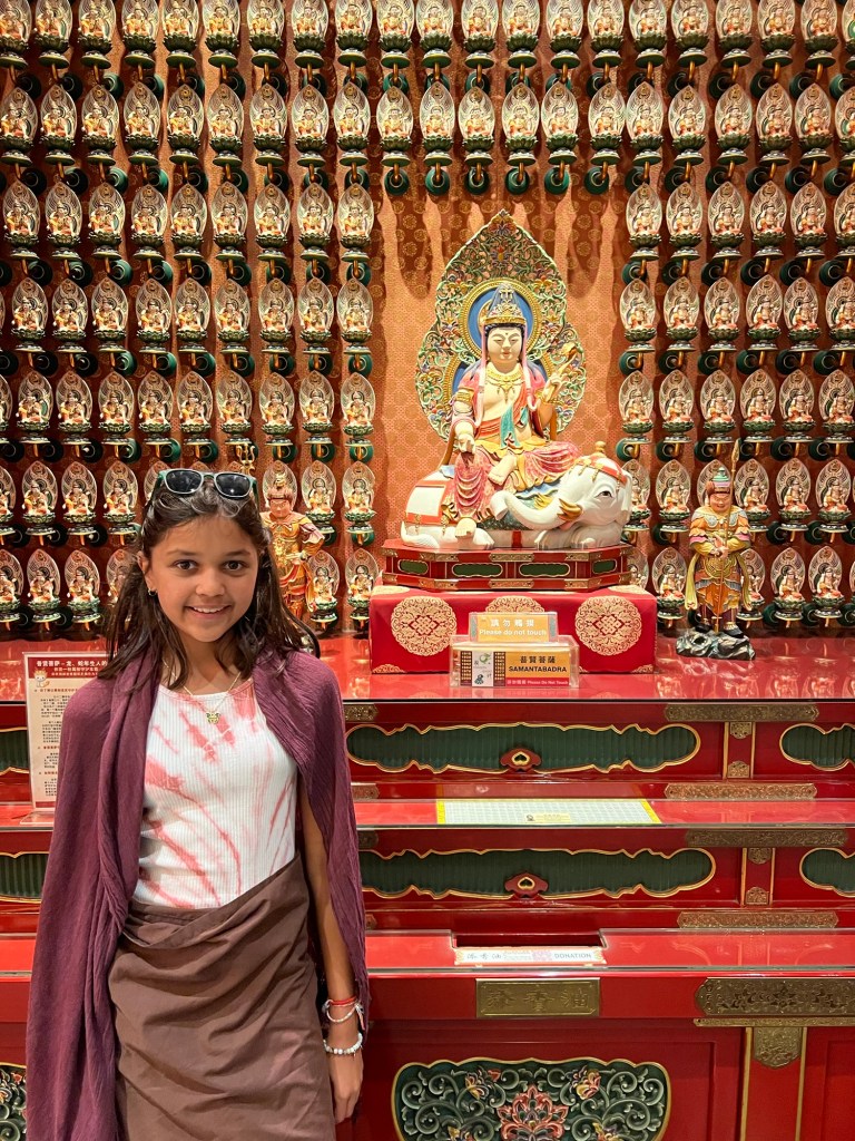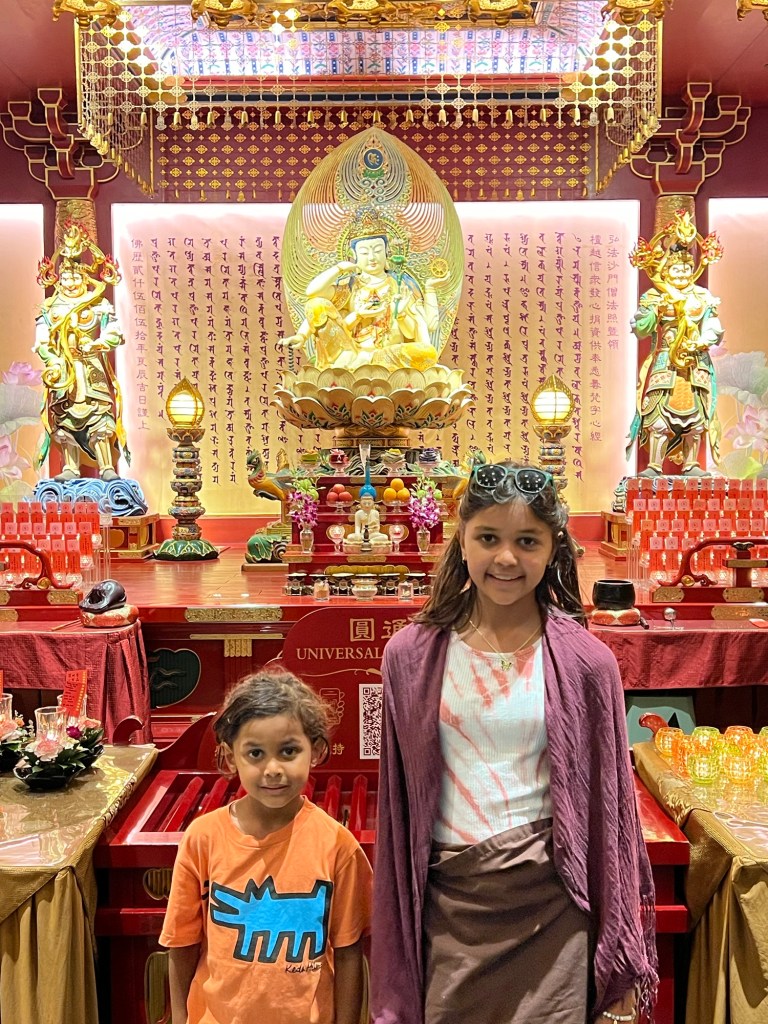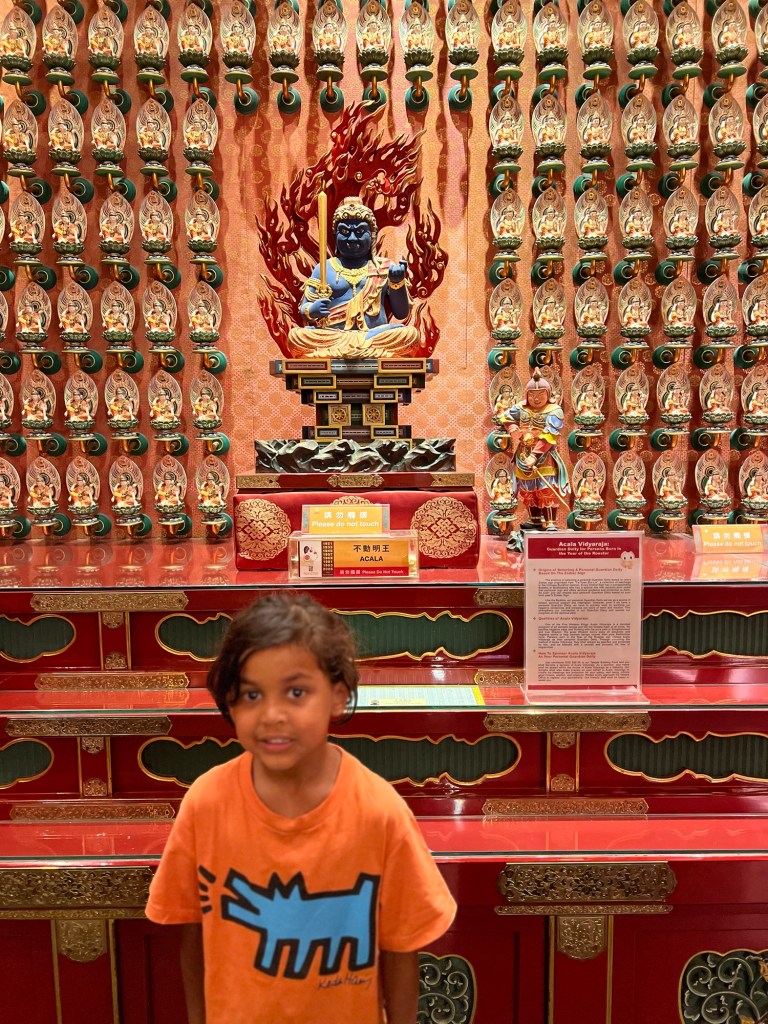 The upper part is like a museum of Buddhist artefacts. But best of all, there is the room of the Buddha tooth relic! It is beautiful. It is covered in gold and gemstones; the gated section of the relic is made out of pure gold!