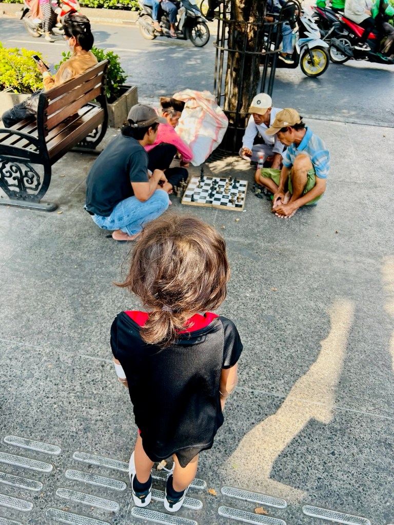 Looking at Siddharth watching the chess players, I can almost imagine that he wants to join in