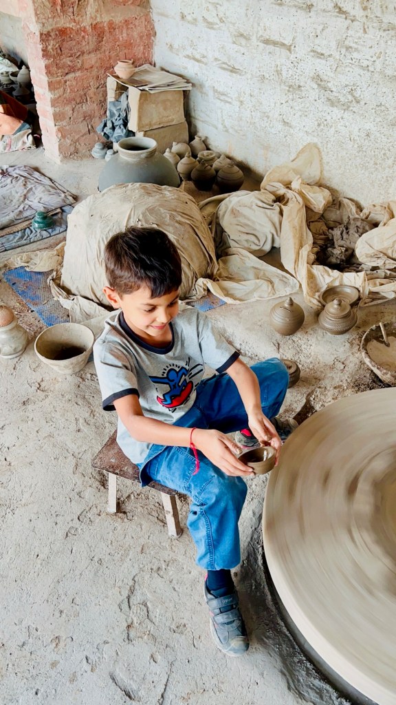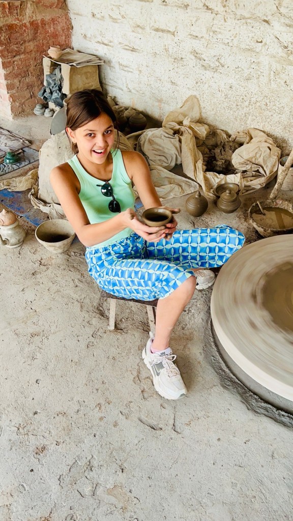 We also went on a village safari, driving in a jeep through a rural village. We learnt about the potters and how they make the pottery, the weavers and their cooperation and we had a traditional meal. It was very interesting!