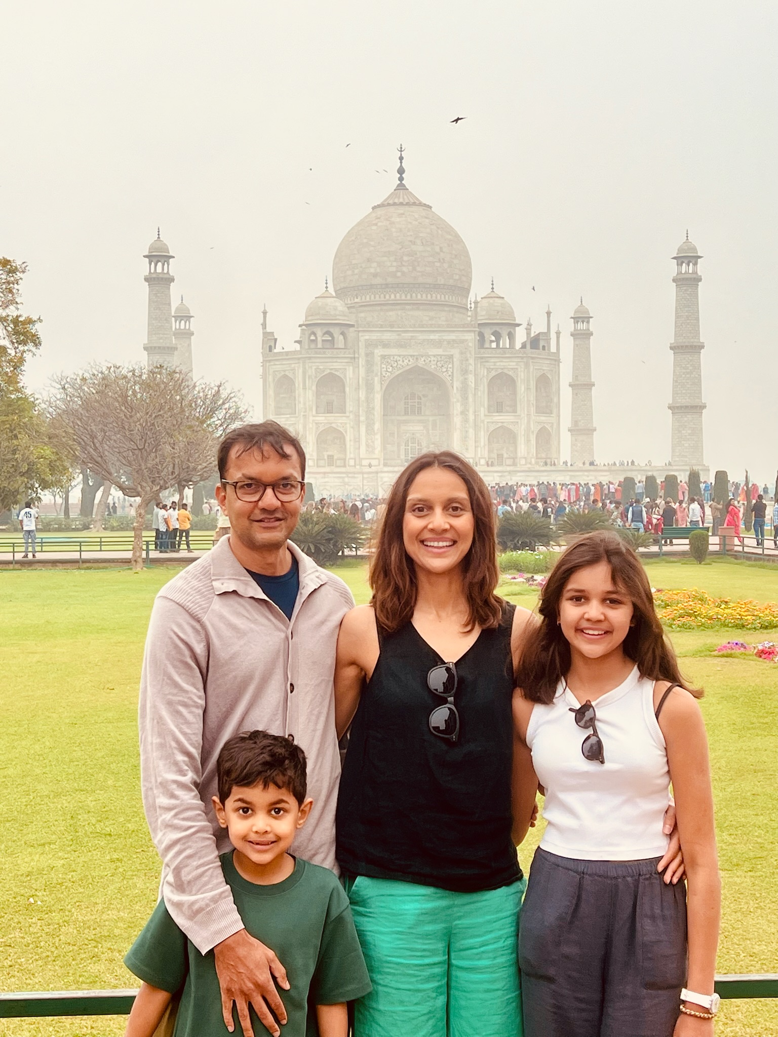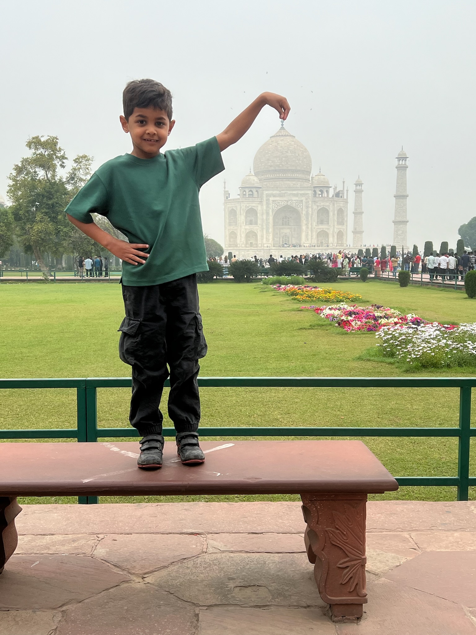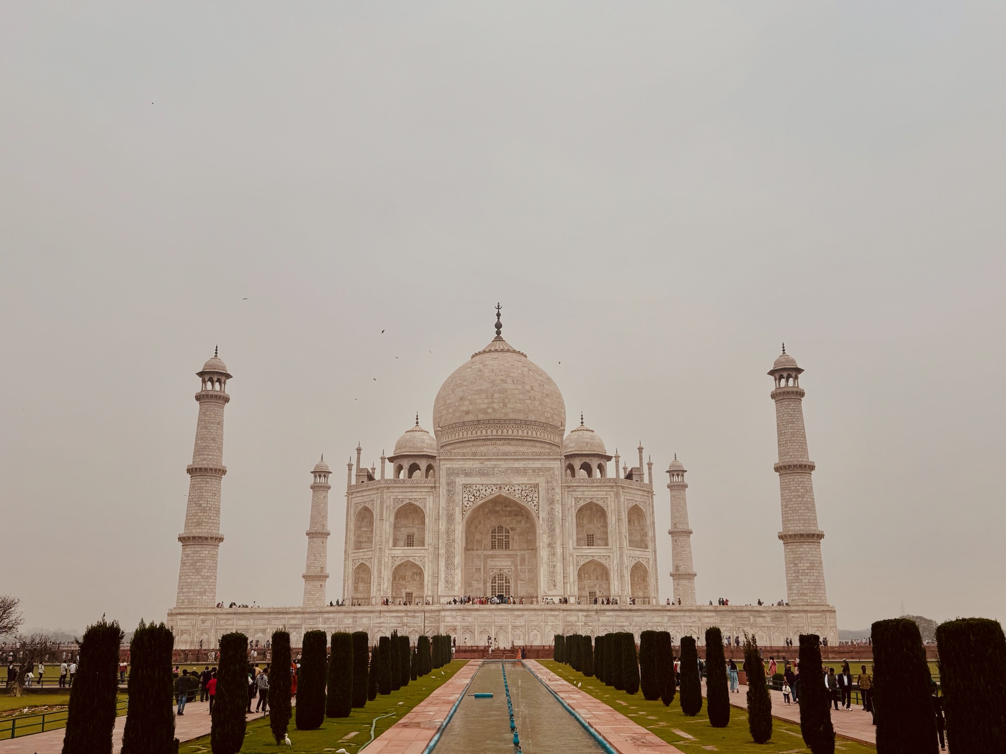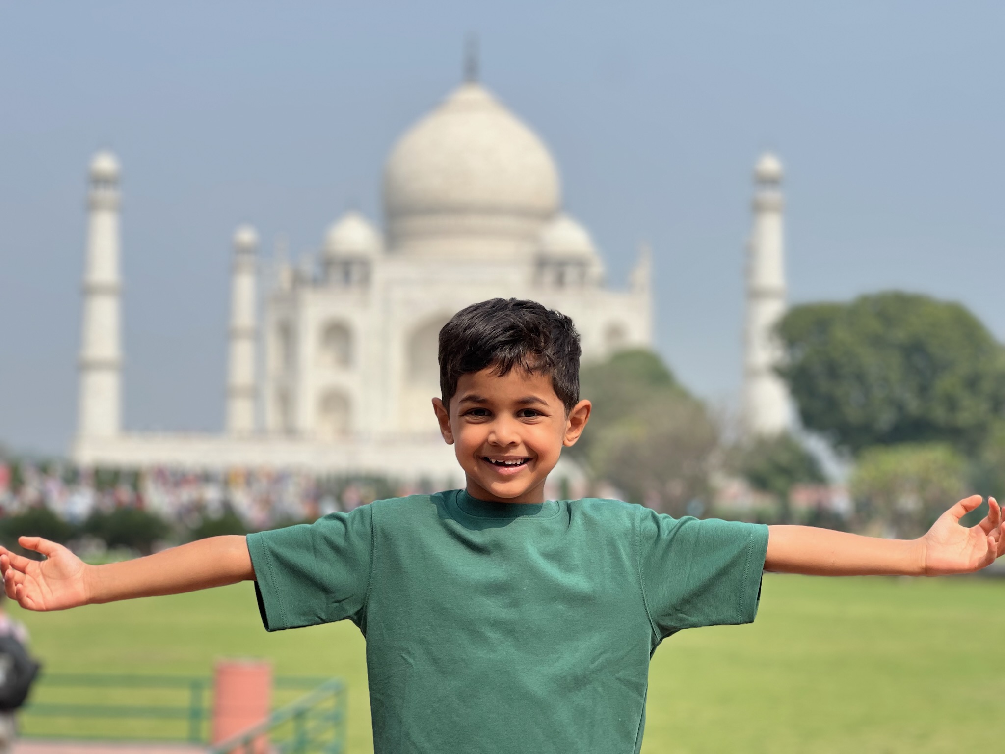 I had been looking forward to going to the Taj Mahal for ages! When I woke up on the morning that we were going to it I was SO excited! In the car anticipation quivered. When we got there we stood in the precise centre of an ornately inlaid and carved gate and saw a magnificent marble structure rising out of the mist like an elegant, dreamy apparition. It looked so beautiful!