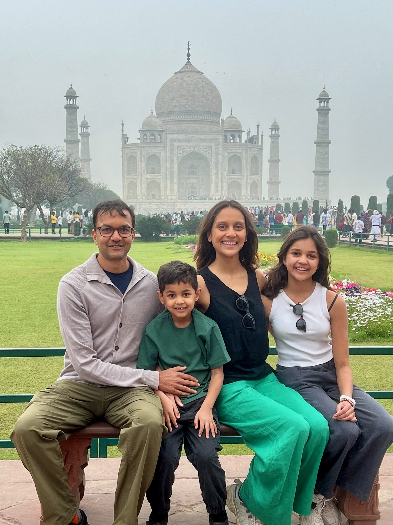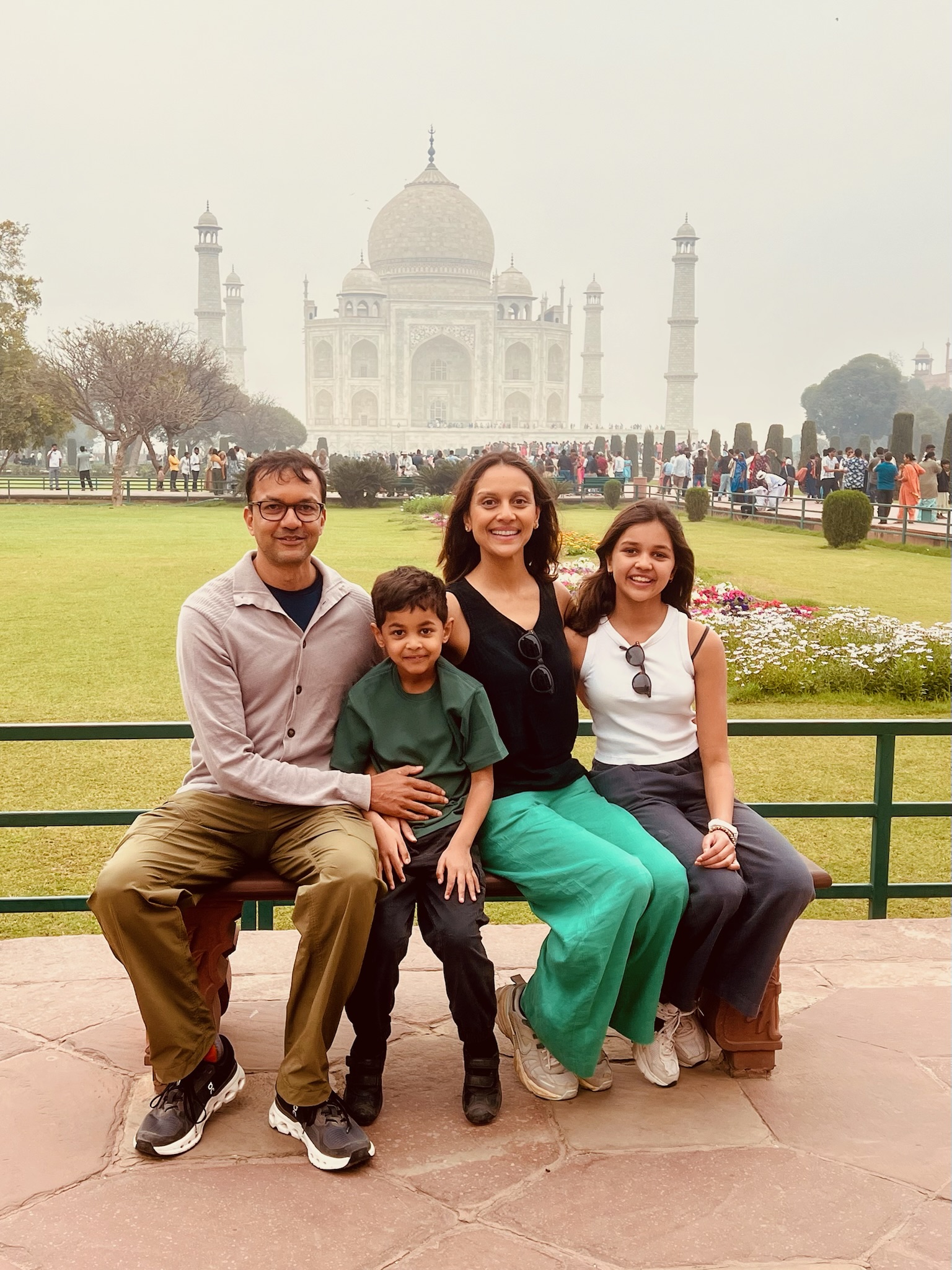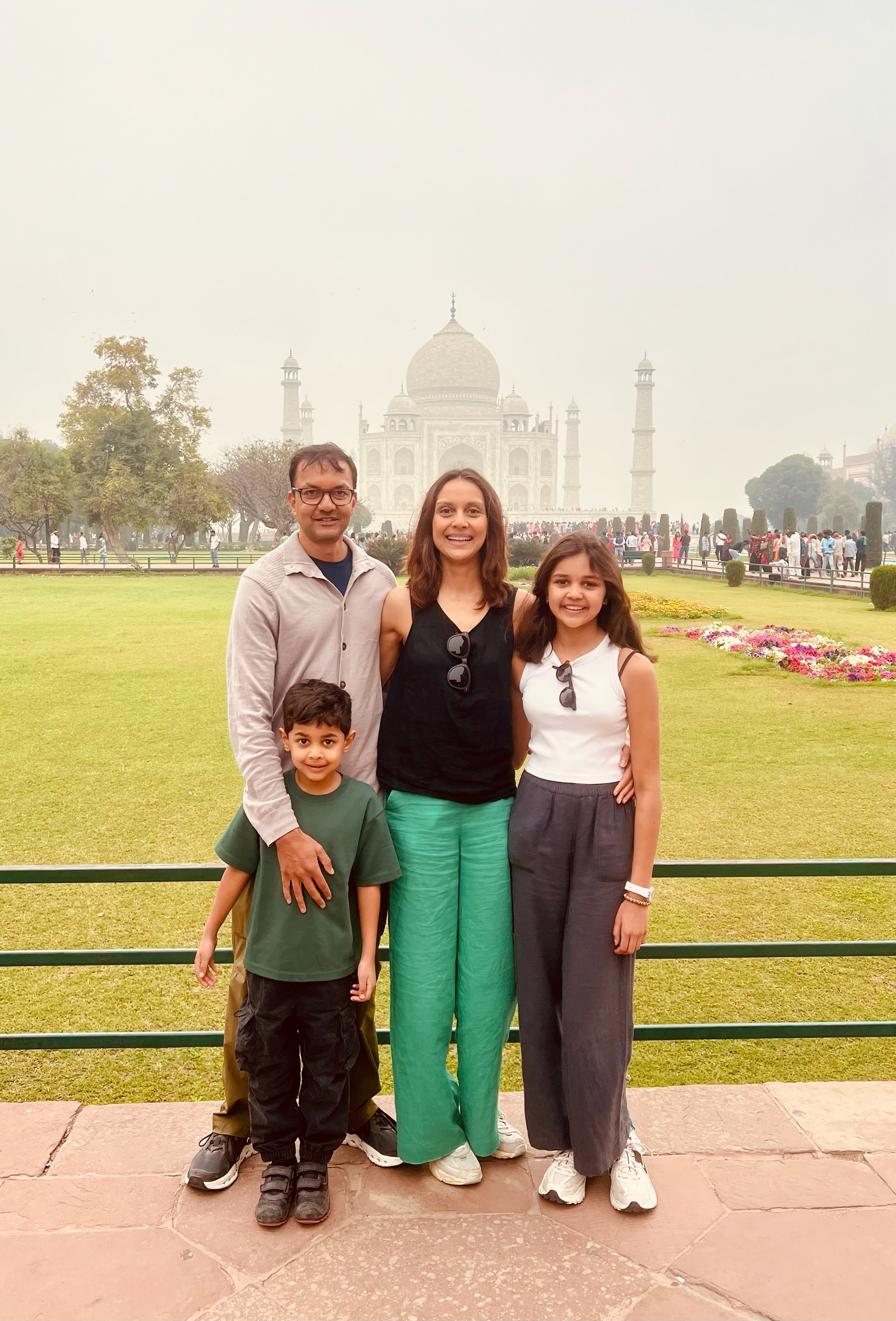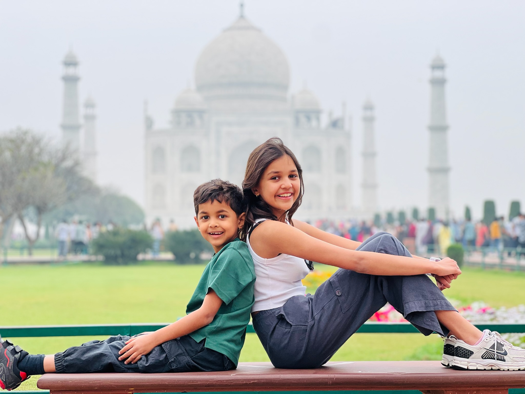 I had been looking forward to going to the Taj Mahal for ages! When I woke up on the morning that we were going to it I was SO excited! In the car anticipation quivered. When we got there we stood in the precise centre of an ornately inlaid and carved gate and saw a magnificent marble structure rising out of the mist like an elegant, dreamy apparition. It looked so beautiful!